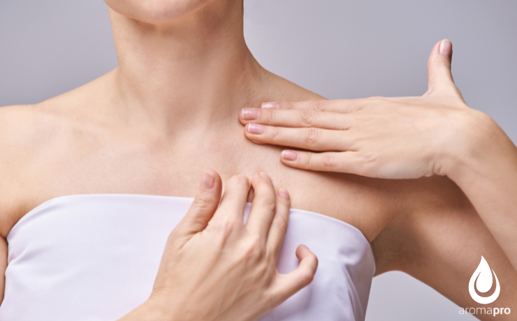 1. Clavícula: Empieza con movimientos suaves y superficiales alrededor de las clavículas. Coloca las manos cruzadas sobre el pecho, con los dedos planos sobre las clavículas, y haz movimientos circulares, 20-30 veces.